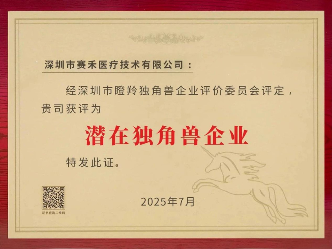 近日,2025中国(深圳)独角兽企业大会顺利召开,此次评选由深圳市工业和信息化局、深圳市中小企业服务局指导,深圳私募基金业协会与深证中小企业服务中心联合头部创投机构、产学研机构共同开展,从超1500家申报企业中严格遴选出149家潜在独角兽企业,赛禾医疗凭借在泛血管有源介入诊疗领域的卓越创新能力与高速发展潜力,荣获经深圳市瞪羚独角兽企业评价委员会评定的“潜在独角兽企业”称号。