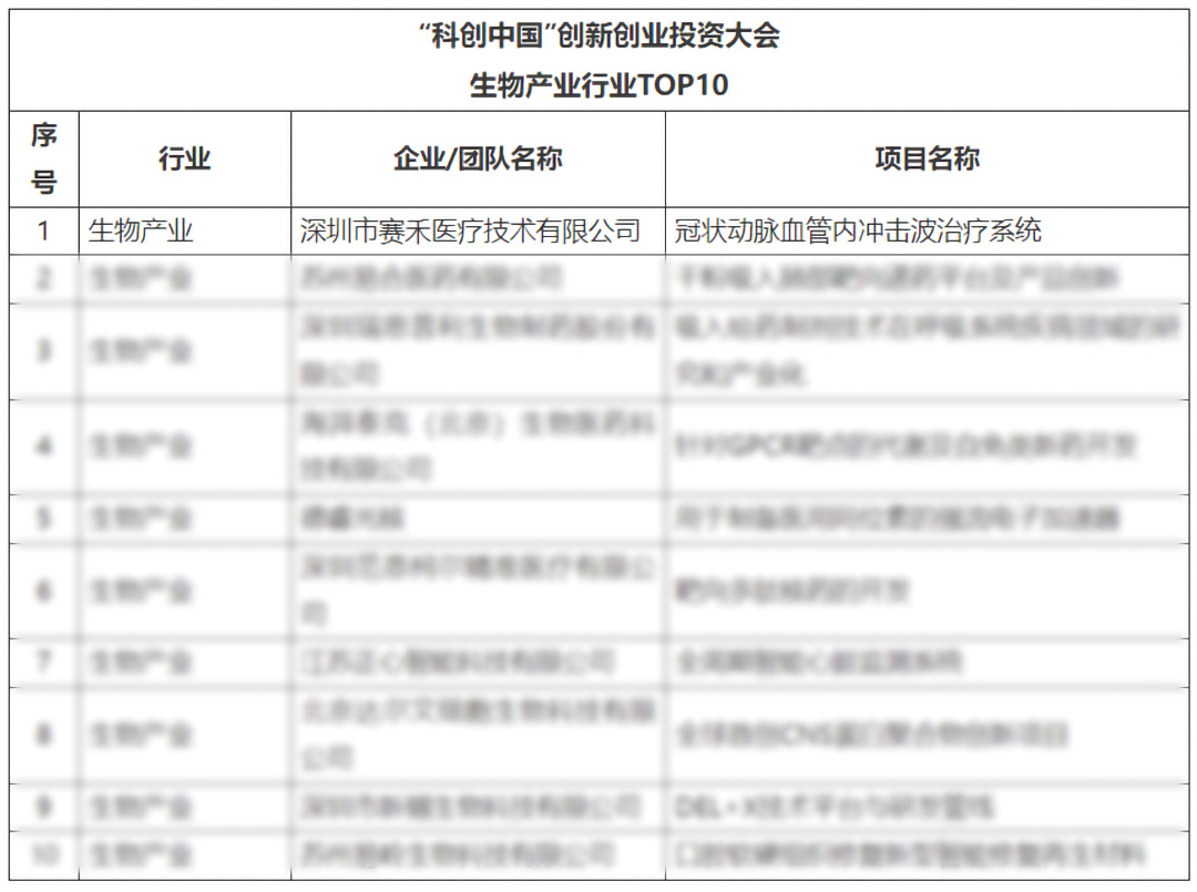 近日在2024“科创中国”创新创业投资大会上,赛禾医疗凭借自主研发的冠状动脉血管内冲击波治疗系统从全国参评项目中脱颖而出,荣膺“生物产业行业TOP10”排行榜第一名。