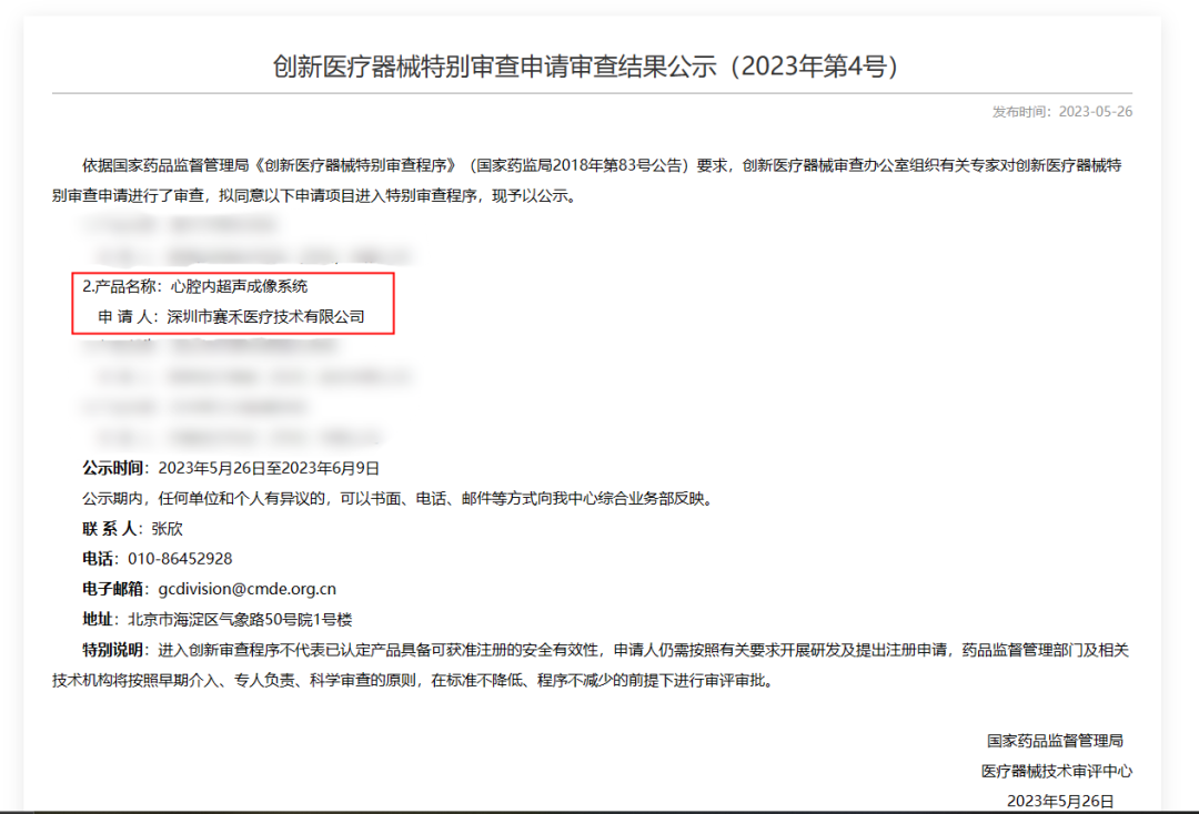 近日,赛禾医疗自主研发的心腔内超声成像系统(ICE系统)获准进入创新医疗器械特别审查程序,成为国内首个进入创新绿色通道的国产ICE系统。该产品目前已经完成注册临床进入注册申报阶段,有望成为国内首个上市的国产ICE系统。