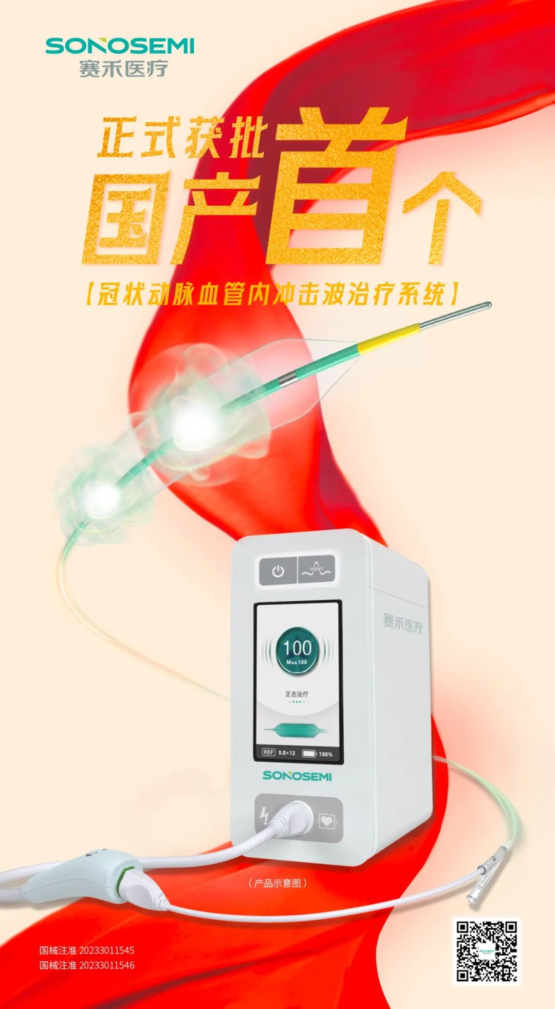 近日,深圳市赛禾医疗技术有限公司(以下简称“赛禾医疗”)自主研发的冠状动脉血管内冲击波治疗系统正式获得国家药品监督管理局(NMPA)批准上市,成为国内首个获批的国产冠脉冲击波治疗系统。